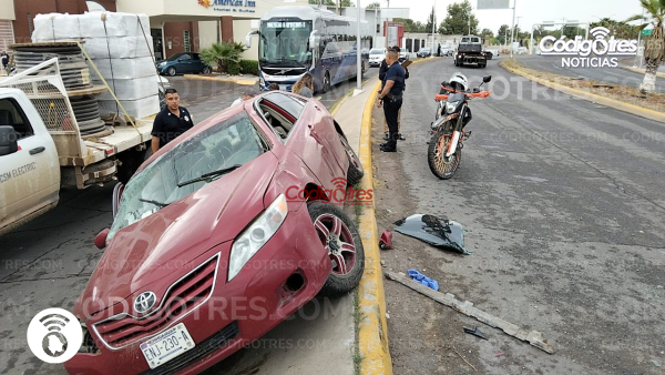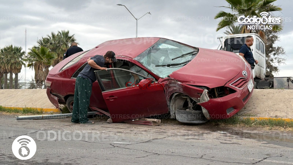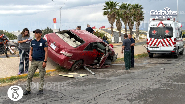 Delicias.- Hoy no es el mejor día para conducir, hace unos momentos una mujer que conducía un Toyota línea Camry volcó en el distribuidor vial oriente, mejor conocido como el puente de Soriana.
