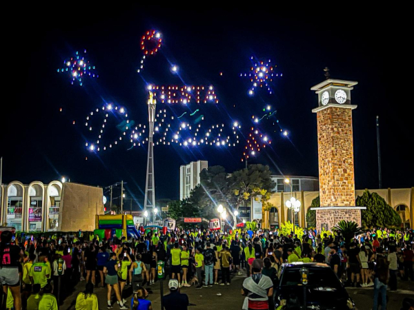 Al concluir el recorrido, los participantes pudieron disfrutar de un espectáculo de drones que iluminó el cielo con figuras representativas del municipio como el Reloj Público, Cristo Rey y las Pizcadoras, entre otros elementos alusivos al 93 aniversario, que sin duda fueron del agrado de todos los asistentes.