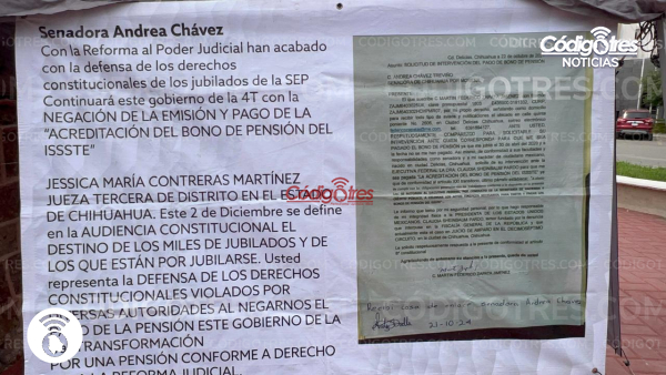 Él puso la denuncia respectiva, está en el primer tribunal colegiado en materia penal y administrativa del décimo céntimo circuito de la Suprema Corte de Justicia del poder judicial en Chihuahua. Para la resolución le dijeron que van por prelación. Al igual, entregó de evidencia un libro en donde documento el fraude del robo de pensión a más de 800 mil trabajadores.