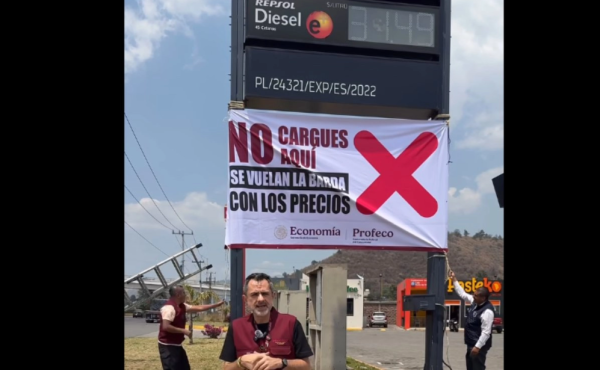 “El mensaje es muy claro a las personas consumidoras, donde vean esta lona, no carguen gasolina. Seguramente cerca del lugar donde están van a encontrar una estación con precios justos”, recomendó.