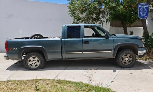 La pick up asegurada es de la marca Chevrolet, línea Silverado, cabina y media, color gris, sin placas de circulación la cual no cuenta con reporte de robo, en su interior se localizó un cargador con 31 cartuchos útiles, calibres .223 y otro cargador de disco con 25 tiros útiles, también calibre .223mm.