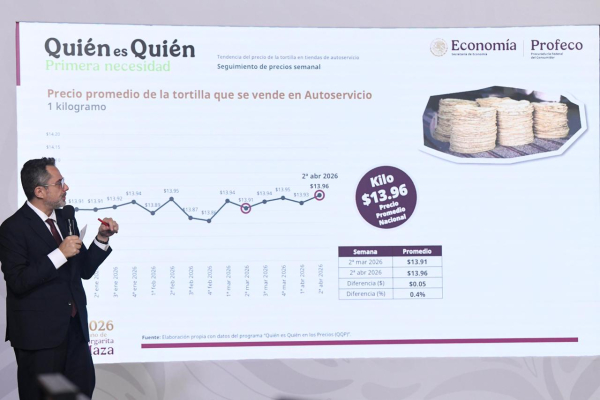 Así, dijo, el precio promedio nacional del kilogramo de tortilla de tortillería es