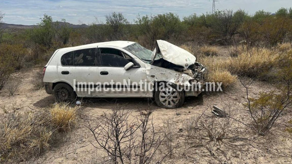 Según los primeros reportes, un Nissan Almera de color blanco, en el que viajaban dos jóvenes con destino a la ciudad de Chihuahua, salió del camino por causas aún no determinadas.