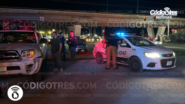 De acuerdo con el reporte, el conductor de una motocicleta color rojo circulaba en sentido de oriente a poniente cuando omitió el señalamiento gráfico en rojo e intentó cruzar, siendo impactado por una camioneta blanca tipo pick up de la marca Toyota.