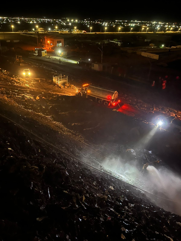 El incidente, comenzó poco antes de las 8:00 PM de este viernes 17 de abril en uno de los taludes de la ampliación de la celda dos, por lo que de inmediato se comenzaron las labores por parte de personal de la dirección de Servicios Públicos Municipales en lo que los elementos de Bomberos arribaron al lugar.