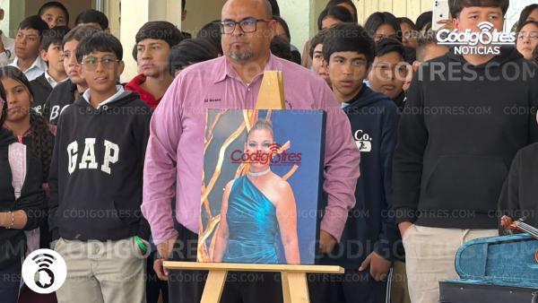 Delicias. - La maestra Laura Bustamante hoy recibió un emotivo homenaje en la Secundaria 96 ‘’Vencedores del Desierto’’, en donde se sintió el gran pesar de su pérdida debido a su fallecimiento el pasado viernes a causa de un accidente vial.