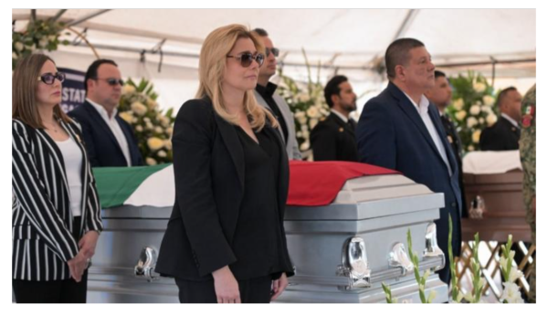 La gobernadora Maru Campos encabezó la ceremonia de honor en la que despidieron al director de la AEI, Pedro Román Oseguera Cervantes y el agente Manuel Genaro Méndez Montes que fallecieron ayer en un accidente.