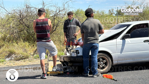En cuanto al automóvil Nissan tiene un aparatoso golpe en toda la parte frontal, mismo que desprendió los faros, el cofre, la defensa y algunos otros elementos internos del motor.