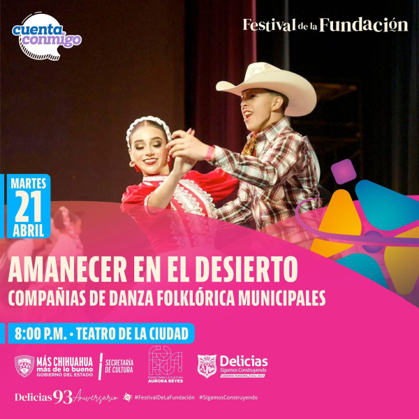 Este martes, el escenario del Teatro de la Ciudad se llenará de color, música y tradición con la presentación “Amanecer en el Desierto”, un espectáculo a cargo de compañías de danza folclórica municipales que forma parte del Festival de la Fundación en su 93 aniversario.
