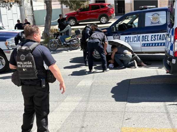Chihuahua, Chih.– Una mujer adulta mayor resultó lesionada luego de ser atropellada por una patrulla de la Policía Estatal cuando cruzaba por un paso peatonal en la colonia San Jorge.