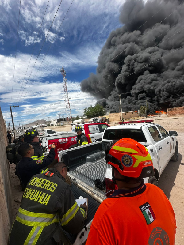 La tarde de este domingo personal del H. Cuerpo de Bomberos se encuentra atendiendo y trabajando en la sofocacion total del incendio registrado en la empresa Procesadora y Recicladora de Materiales Industriales, ubicada en las calles Sierra de la Cal y calle 57, en la colonia Primero de Mayo, donde se almacenaban cerca de 160 toneladas de plástico.