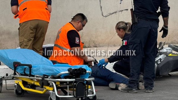 CAMARGO.- La tarde de hoy se registró un aparatoso accidente en la calle de la Juventud, en la colonia Revolución, donde dos hombres que viajaban a bordo de una motocicleta Italika, de color gris con detalles negros y amarillos resultaron con heridas de consideración.