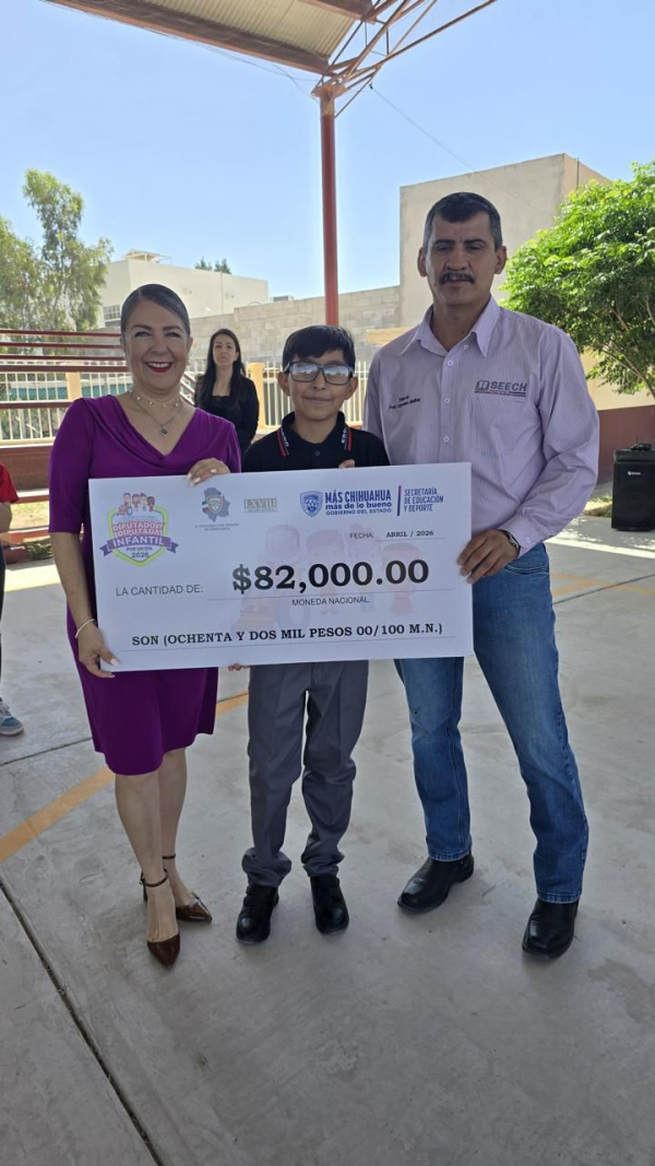 Cd. Juárez, Chih., En el marco del evento Diputado Infantil 2026, la diputada Rosana Díaz encabezó la entrega de un apoyo económico por 82 mil pesos a la escuela primaria Vicente Guerrero, recurso que será destinado a mejoras en la infraestructura del plantel.