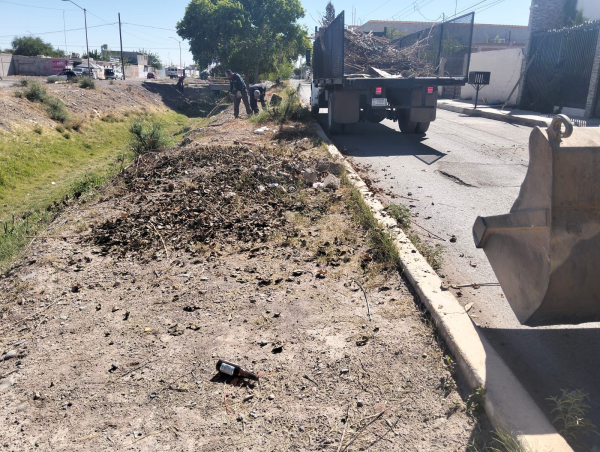 El dren ubicado en la colonia Obrera también fue objeto de intervención, donde se efectuaron trabajos de limpieza para evitar acumulaciones de basura y mejorar el flujo del agua, reduciendo riesgos para la población.