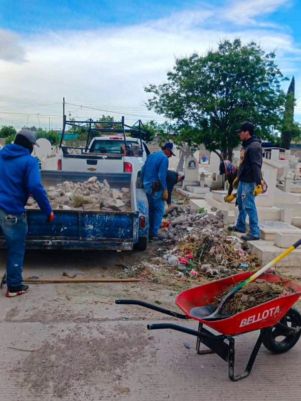 El Gobierno Municipal de Meoqui, a través de la Dirección de Servicios Públicos Municipales, continúa con labores de limpieza y mantenimiento en los panteones del municipio, tanto en la cabecera municipal como en la comunidad de Los Jáquez, reforzando estas acciones ante la proximidad del 10 de mayo.