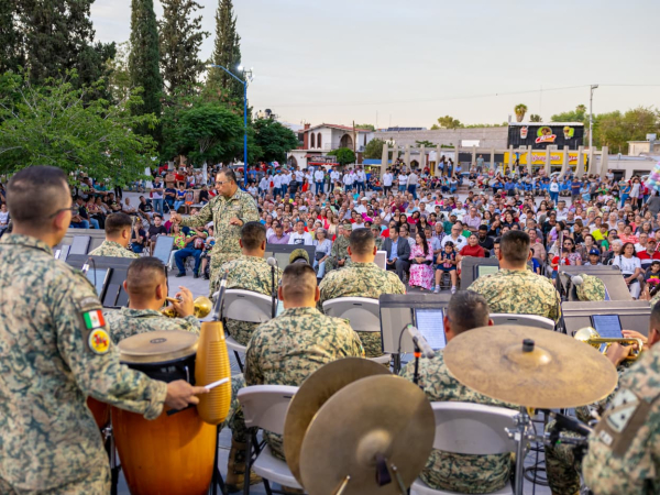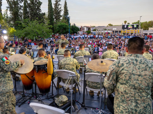 La Banda de Música de la XI Región Militar ofreció un repertorio variado que incluyó piezas tradicionales y contemporáneas, logrando cautivar al público asistente. Entre melodía y melodía, era común ver a parejas bailando, grupos de amigos cantando y familias completas compartiendo momentos de alegría, lo que convirtió la velada en una experiencia llena de emoción y cercanía.
